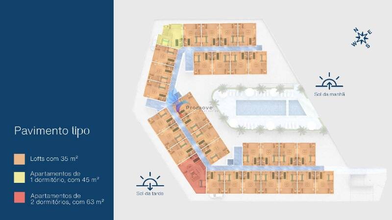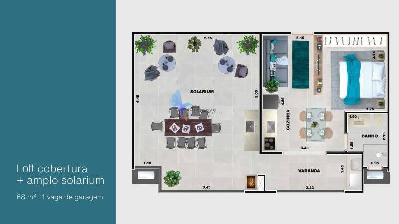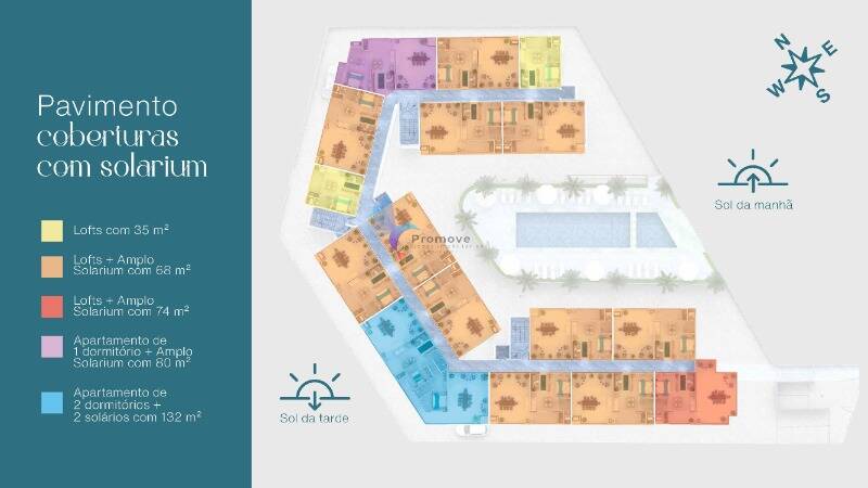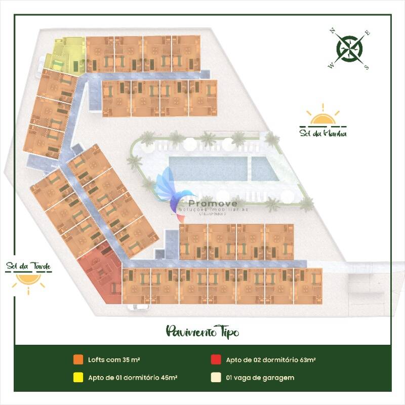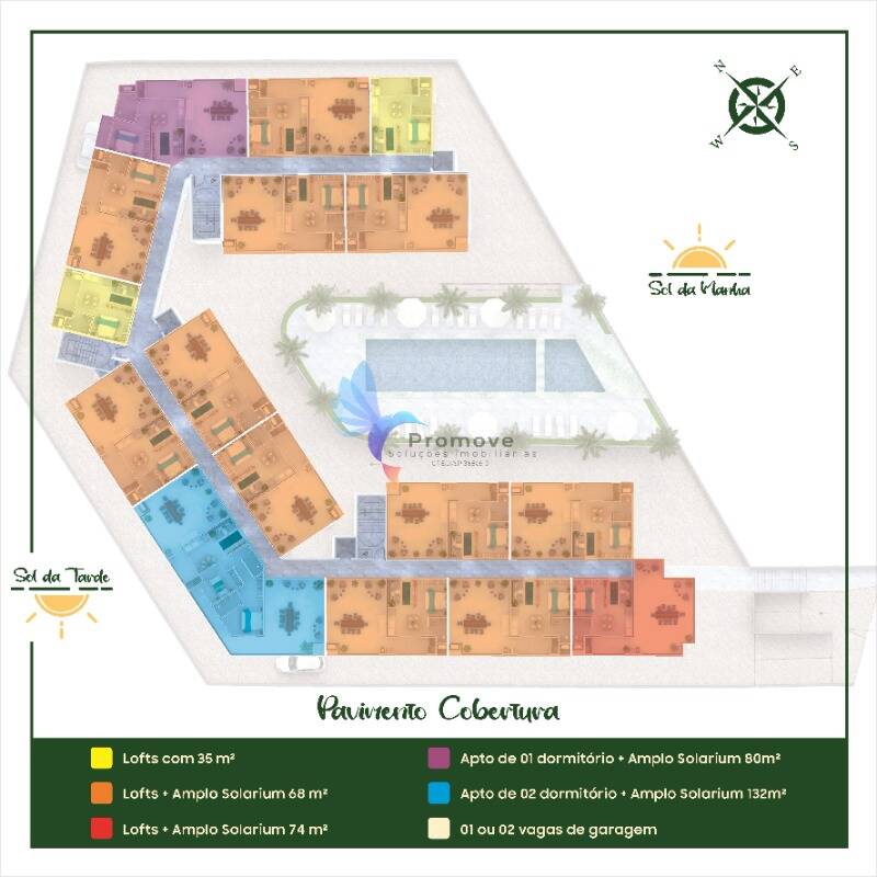 No 5º andar do Aruba Residence, você encontrará lofts coberturas, incluindo opções com solarium.