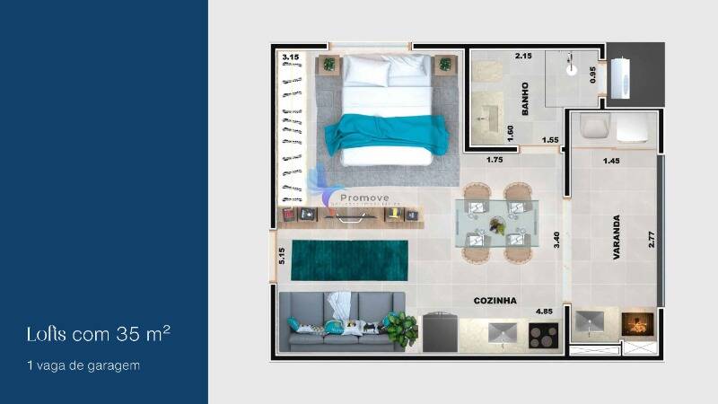 Os lofts têm 35 m² e vêm com uma vaga de garagem.