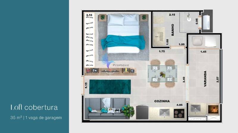 Há um loft cobertura de 35 m² com uma vaga de garagem.